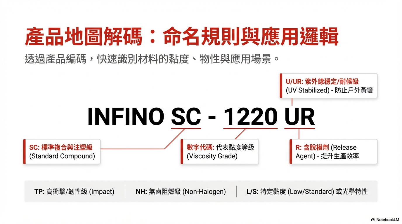 樂天化學的 PC 產品線主要由兩大品牌構成:INFINO® 與 HOPELEX。INFINO® 定位為高階工程塑膠與合金品牌,象徵著無限的可能性(Infinite Possibilities) ;而 HOPELEX 則涵蓋了廣泛的基礎樹脂與標準等級應用 。